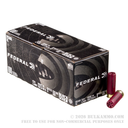 100 Rounds of 12ga Ammo by Federal Black Pack - 00 Buck