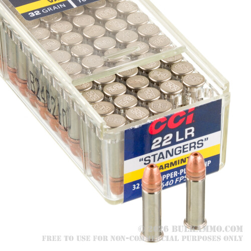 Why do so many people love Stangers? Because this round’s tiny 32 grain bullet comes out of the barrel at a hot 1,640 fps muzzle velocity, which in turn produces the flatter-than-Nebraska trajectory which makes lining up precision shots easy as pie. And if that trajectory happens to terminate at a varmint, forget about it – the hard-hitting copper-plated hollow point delivers the terminal expansion that will make the varmint regret ever getting within eyeshot of you.