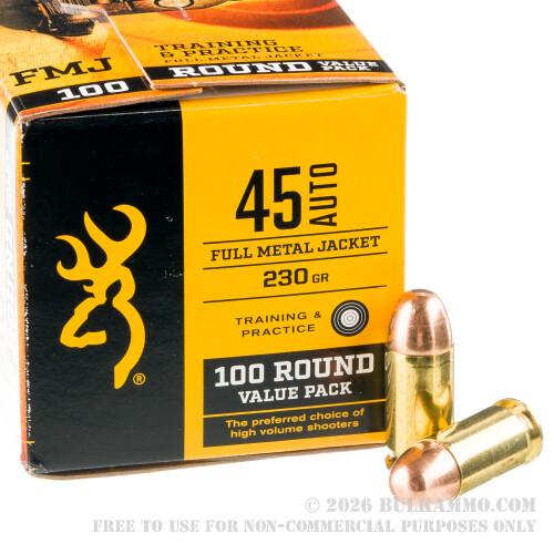 100 Rounds of .45 ACP Ammo by Browning - 230gr FMJ