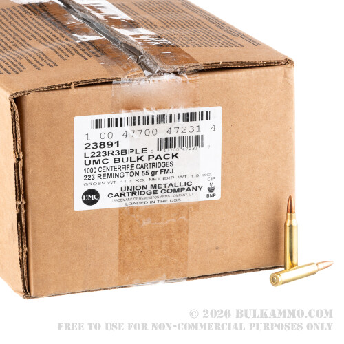 1000 Rounds of .223 Ammo by Remington UMC Bulk Pack - 55gr FMJ