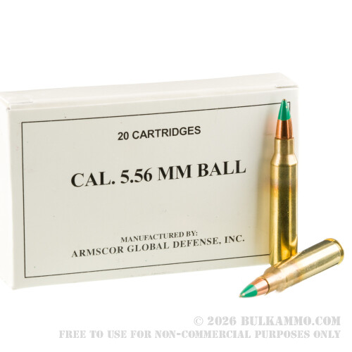 1000 Rounds of 5.56x45 Ammo by Armscor - 62gr FMJ M855
