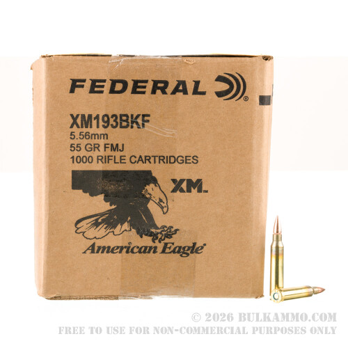 1000 Rounds of 5.56x45 Ammo by Federal American Eagle - 55gr FMJ XM193