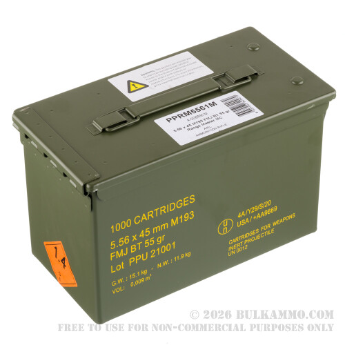 1000 Rounds of 5.56x45 Ammo by Prvi Partizan in Ammo Can - 55gr FMJBT M193