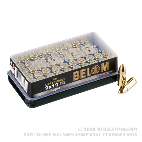 1000 Rounds of 9mm Ammo by Belom - 124gr FMJ