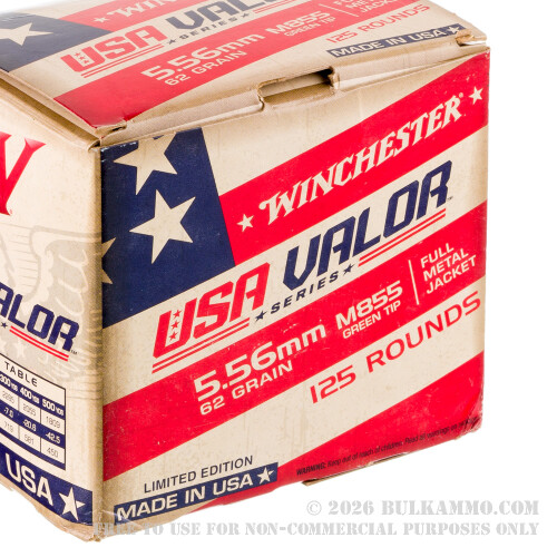 1250 Rounds of 5.56x45 Ammo by Winchester USA VALOR - 62gr FMJ M855