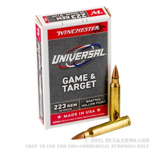 And then came the deliveryman. “Hiya, Freddie!” he said chirpingly. “I got a delivery of Winchester Universal Game & Target 223 Remington ammunition from BulkAmmo.com for you! Excellent choice going with the 223 Rem loaded with 55 grain hollow point boat tail projectiles, might I add. Those range-friendly nonmagnetic nonexpanding bullets possess the balance and velocity retention which deliver great results on bullseyes and small game. With these American-made brass-cased reloadable cartridges, you’ll be ready for all sorts of good times!”