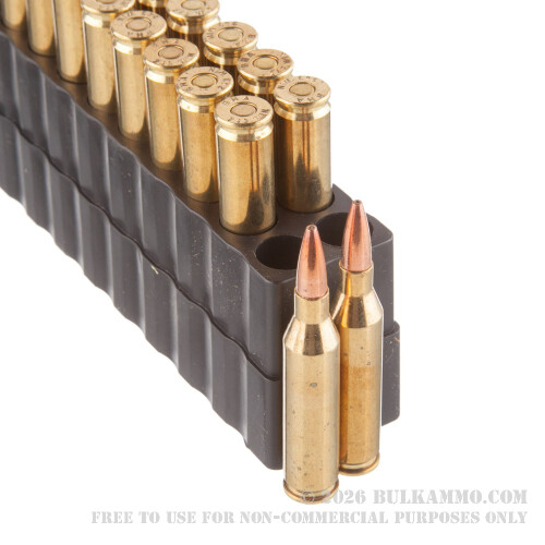 A good choice for the small and medium game scenarios where precision and consistency outweigh the need for cheap ammo, this load puts out the performance needed to get quick kills while in the field. The 85 grain bullet is a Barnes TSX hollow point projectile offering a full copper build and produces exceptional velocity and energy on impact.