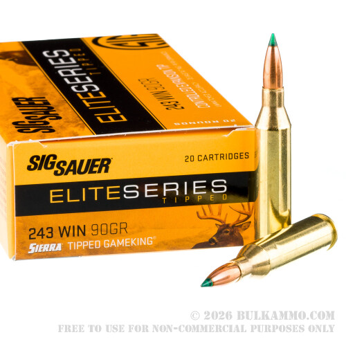 20 Rounds of .243 Win Ammo by Sig Sauer Elite Hunter - 90gr Controlled Expansion Tip