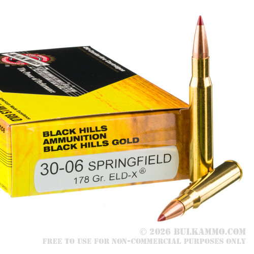 Looking for true long-distance 30-06 Springfield hunting ammo? Then you couldn’t have looked in a better place. Black Hills’ Gold series ammunition represents the absolute highest quality the South Dakotan company can pull off, and the ELD-X projectile by Hornady is plenty effective at ranges beyond 500 yards!