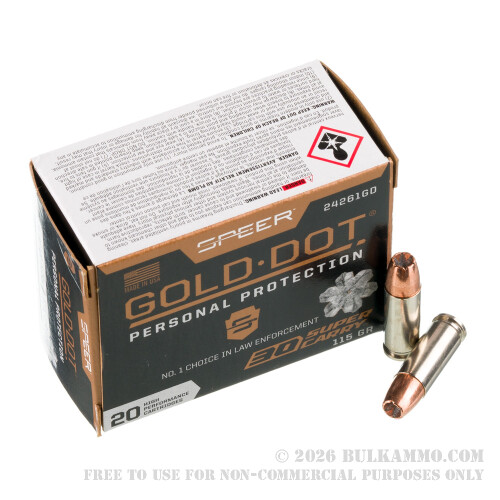 Speer Gold Dot 30 SC ammo features nickel-plated brass cases. These are smooth-cycling in all semi-autos, as well as highly resistant to the kind of corrosion that can damage ammunition in storage or in an everyday carry pistol’s magazine. CCI’s sealed primers make this ammunition even more reliable and safer in storage!