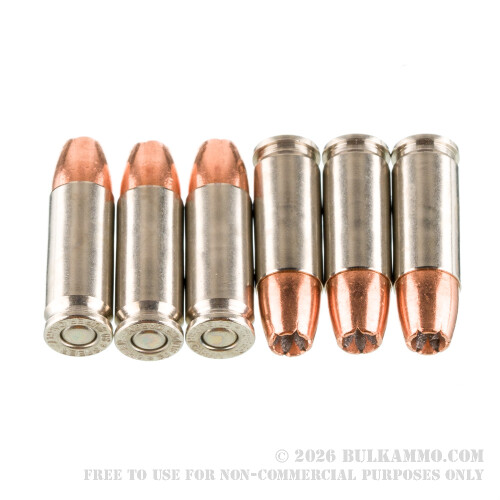 The Gold Dot is a true bonded jacketed hollow point. The Uni-Cor process yields a jacket that is not only virtually perfectly concentric, but also electrochemically fused to its alloyed lead core. This is why the Gold Dot JHP retains its weight so effectively as it pierces barriers and soft tissue, and also why it exhibits such excellent accuracy. The JHP’s hollow point nose cavity is programmed to expand at a uniform rate and to a consistent width, which provides the clockwork terminal expansion that so effectively neutralizes a threat.