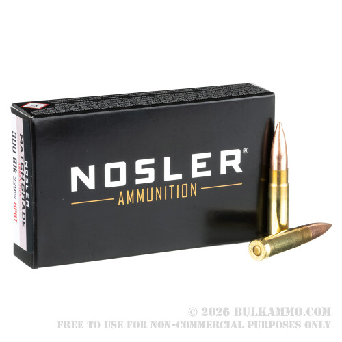 20 Rounds of .300 AAC Blackout Ammo by Nosler Match Grade - 220gr Custom Competition