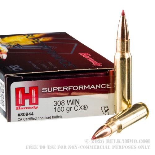 Fouling is even lower thanks to this round’s second exciting feature: its 150 grain CX bullet. It’s totally leadless, and is therefore fine and dandy for hunting wherever lead is a dirty word. The CX’s sleek tip, profile and boat tail all enable it to conserve a superior percentage of its already high starting velocity, and its robust construction secures no less than 95% weight retention. That lets the bullet conserve the momentum it needs to enter deeply through its target, as well as undergo lethally energetic terminal expansion.