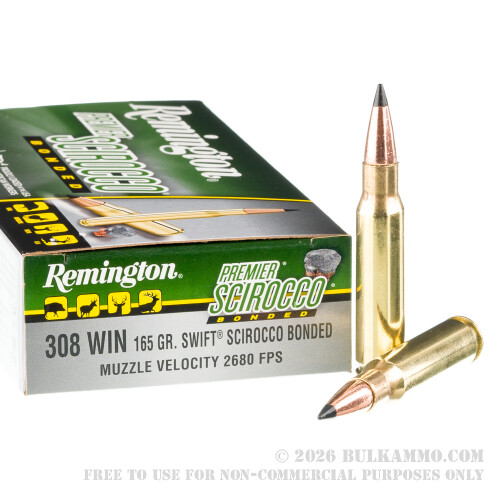 The Scirocco Bonded bullet, by Swift: a definitive solution to taking medium and large American game. And thanks to Remington’s perfected loading practices, you can rest assured that this 308 Win round’s Kansas-made bullet is truly ready for action.