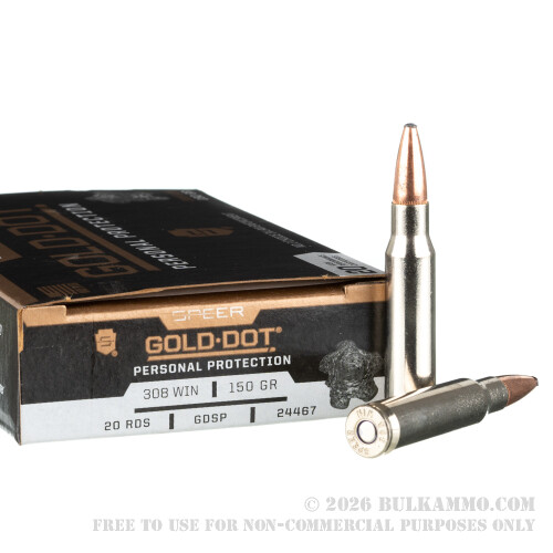 20 Rounds of .308 Win Ammo by Speer Gold Dot - 150gr SP