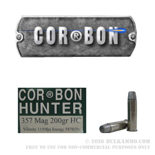 20 Rounds of .357 Mag Ammo by Corbon Hunter - 200gr Hard Cast