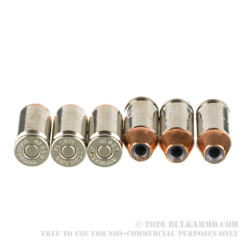 This top shelf 40 S&W self-defense ammo gives you the very best of two great American companies: Nosler, which makes the Sporting Handgun bullet, and Underwood which loads it. Their product is one of the most reliable rounds you could count on during a life-or-death altercation!