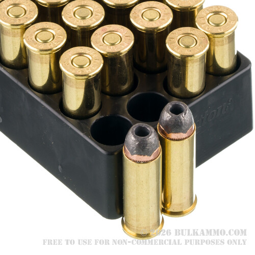 If you want a great deal on a package of 44 Mag ammo, then we wholeheartedly recommend Remington High Terminal Performance (HTP). This standard pressure cartridge lobs a 240 grain bullet at a supersonic velocity of 1,180 fps. Anything within a range of 50 yards is going to have a big problem when that bullet strikes it with over 600 ft lbs of energy. And if you’re more like Clint in Unforgiven, then you’ll get even more power out of your lever gun.