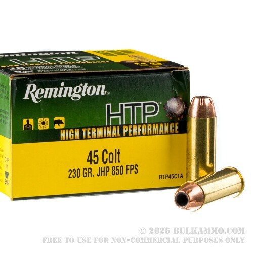 But if you’re upping the stakes during a hunt – or playing for all the beans during a self-defense situation – then you’ll get just what you want from Remington High Terminal Performance ammunition. This 45 Colt round’s 230 grain bullet carries normal energy with it downrange (~350 ft lbs at 25 yards), but it also punctuates impact with up to double-diameter expansion.