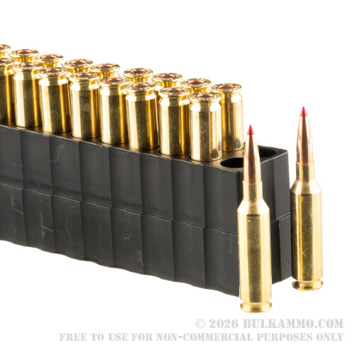 This ammo is designed for accuracy and accuracy alone. That’s because the ELD Match is not a hunting bullet, and cannot tunnel deep or expand wide. Hornady developed the ELD Match for high-stakes competition and leisurely sharpshooting. It’s outfitted with a Heat Shield polymer tip (doesn’t deform under aerodynamic heating), wafer thin and highly concentric AMP jacket (keeps the bullet better stabilized in flight), swaged lead core (ditto), optimized boat tail (reduces drag), and sleek secant ogive profile (ditto).