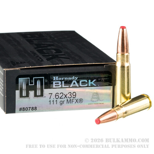 Hornady BLACK 7.62x39 ammo works great in all kinds of guns: SBR, SKS, AK, bolt action, you name it. It’s brass cased, reloadable, and loaded with the attention to detail Hornady is famous for. Take it hunting where lead is banned, and anywhere else for that matter. Keep it ready in a magazine in case life attacks when you least expect it. Either way, the MonoFlex would serve you much better than the 7.62x39’s traditional FMJ!