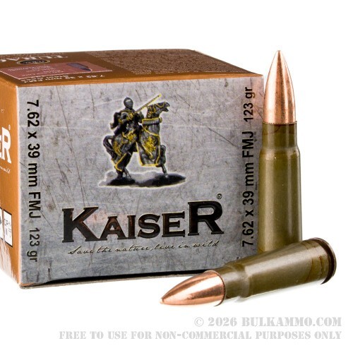 20 Rounds of 7.62x39 Ammo by Kaiser - 123gr FMJ