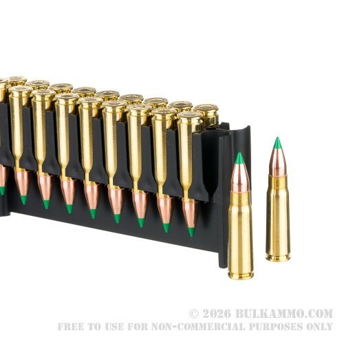 If fired from a 24” barrel, this round’s 123 grain Ballistic Tip can easily conserve at least 1,000 ft lbs of energy until around 185 yards. An impressive display of so sleek a bullet’s ability to conserve velocity (0.168 G7 BC)!