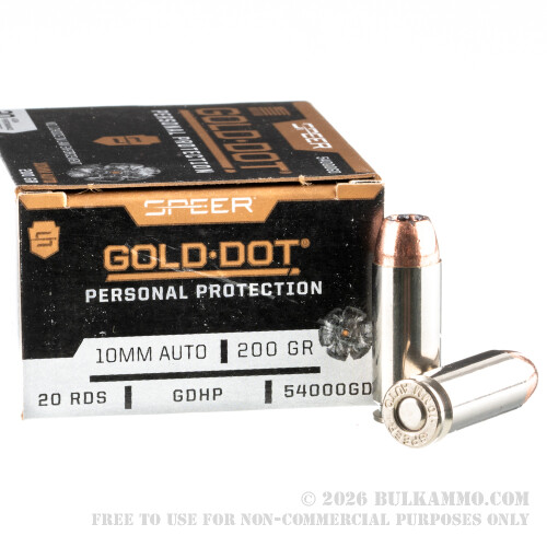 200 Rounds of 10mm Ammo by Speer Gold Dot - 200gr JHP