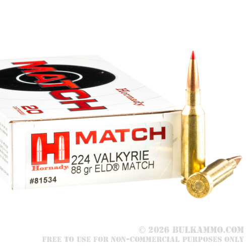 200 Rounds of .224 Valkyrie Ammo by Hornady - 88gr ELD Match