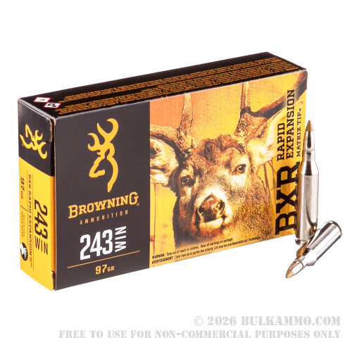 200 Rounds of .243 Win Ammo by Browning BXR - 97gr Rapid Expansion Matrix Tip