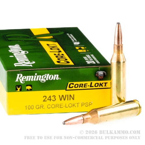 Need a little ammo before you set out in search of deer? Here – have a case of Remington Core-Lokt.* It’s Remington’s most successful line of soft point hunting ammunition, loaded with ballistically efficient (G1 0.356) PSP projectiles that carry well over 1,000 ft lbs striking energy to 300 yards.