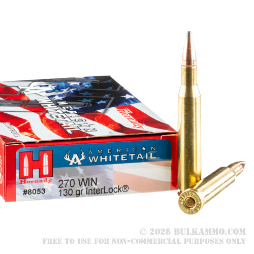 200 Rounds of .270 Win Ammo by Hornady American Whitetail - 130gr InterLock