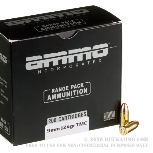 200 Rounds of 9mm Ammo by Ammo Inc. - 124gr TMJ