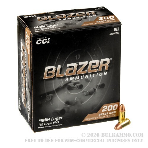 200 Rounds of 9mm Ammo by Blazer Brass - 115gr FMJ