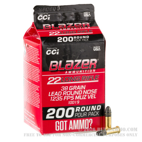 Blazer loads their 22 LR ammo with CCI’s famous rimfire primers. Every stroke of the firing pin ought to produce the bang you’re expecting, and Blazer’s good brass cases help any gun feed and extract on right cue. This ammo comes packaged in ten 200-round milk cartons. Don’t pour it in your cereal or you’ll chip your teeth!