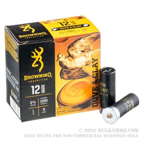 25 Rounds of 12ga Ammo by Browning Dove & Clay - 1 ounce #8 shot
