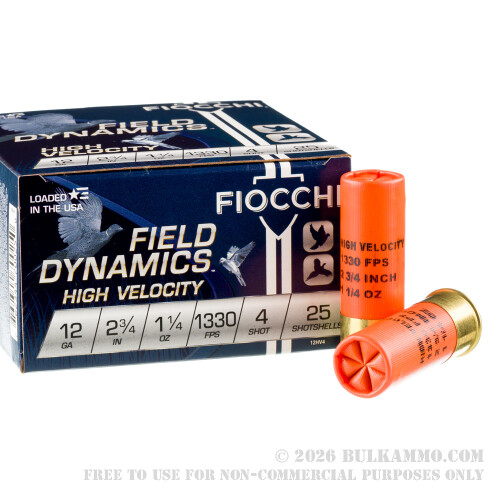 25 Rounds of 12ga Ammo by Fiocchi - 1 1/4 ounce #4 shot