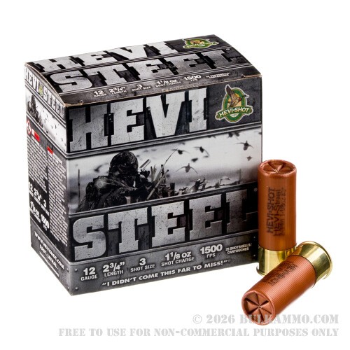This shell is one hot tamale, too. It lobs its 172-pellet payload of #3 steel (which is great for hunting over decoys, in case you didn’t catch our drift earlier) at a beak-twisting muzzle velocity of 1,500 fps. Recoil? Absolutely! Flat trajectory, long-range stopping power, and more energy on target to reduce the risk of a cripple? Just as absolutely! And if you prefer buying American, then Hevi-Steel ammo will be preferred – by you.