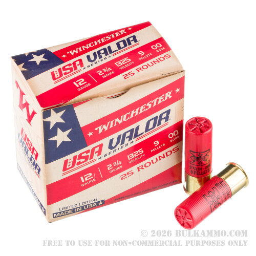 25 Rounds of 12ga Ammo by Winchester USA VALOR - 00 Buck