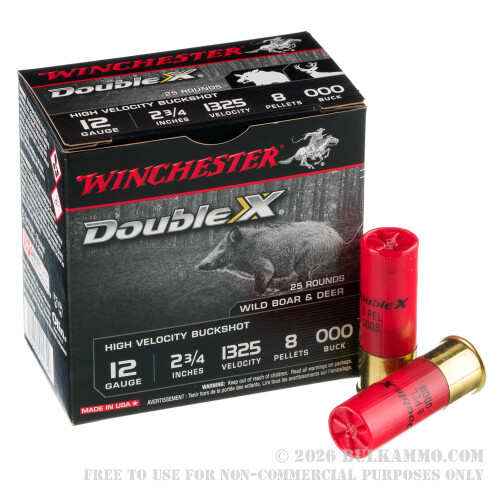 25 Rounds of 12ga Ammo by Winchester Double X - 000 Buck