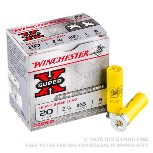 25 Rounds of 20ga Ammo by Winchester Super-X - 2-3/4” 1oz #8 Shot