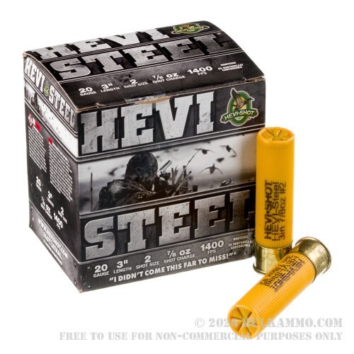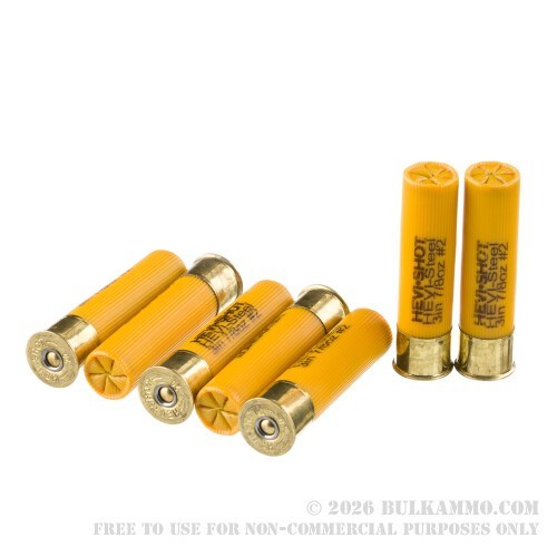 The proof is in the pudding. This high-vel shell appreciably extends the effective range of any 20 Gauge ground-to-duck artillery. You’ll reach farther! You’ll lead ahead with your aim less! You’ll snip Donald out of midair like you’re a machine designed for that very purpose! It’s like the great man once said: “Order Hevi-Steel ammunition with fast shipping from BulkAmmo.com today!”
