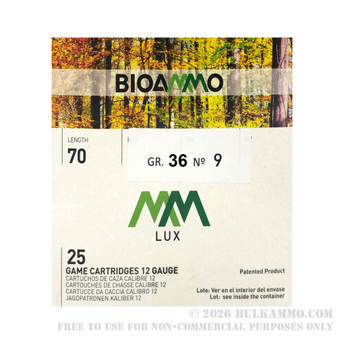 250 Rounds of 12ga Ammo by BioAmmo Lux Lead - 1-1/4 ounce #9 shot