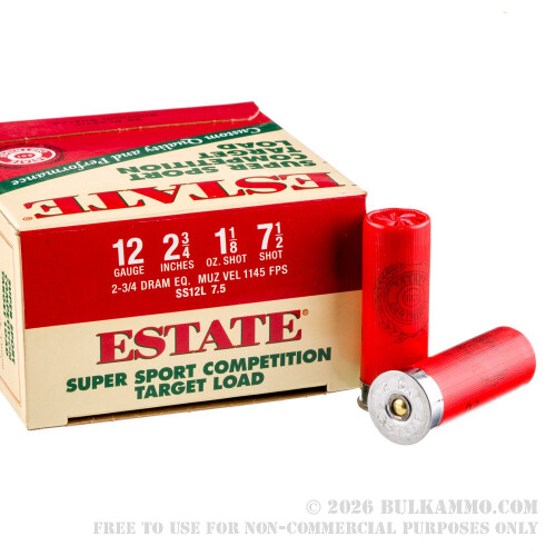 250 Rounds of 12ga Ammo by Estate Super Sport Competition Target - 1 1/8 ounce #7 1/2 shot