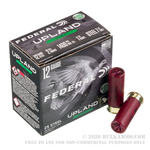 250 Rounds of 12ga Ammo by Federal Upland Steel - 1-1/8 ounce #7 1/2 shot