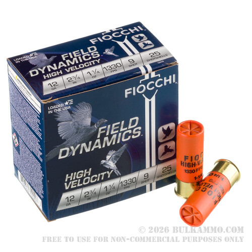 This 12 Gauge shotshell by Fiocchi lets you take full advantage of #9 shot’s delicate killing power. Each round’s 1-1/4 ounce shot column contains well over 700 pellets. Those lead pills are screened not once, not twice, but three times, so they are all exceptionally uniform in size and more or less perfectly spherical.