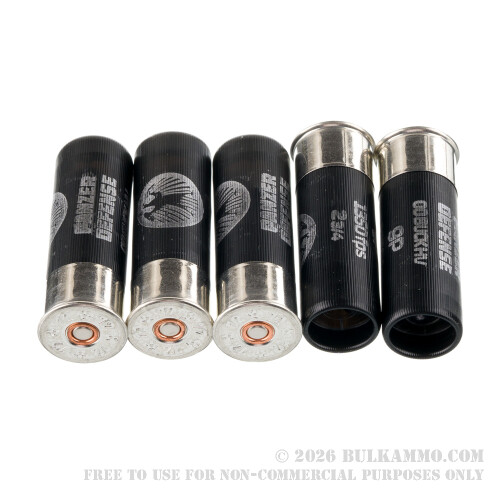 If you do ever wind up needing high-velocity 00 buckshot ammo, then you’ll be glad you’re chambering these black beauties. Each round belches out nine pellets of double-aught at a velocity of 1,350 fps. That gives the shell a dram equivalent of 3-3/4, and its shot column a combined muzzle energy of approximately 1,950 ft lbs (which is 1.5 times the muzzle energy of an AR-15’s 5.56x45).