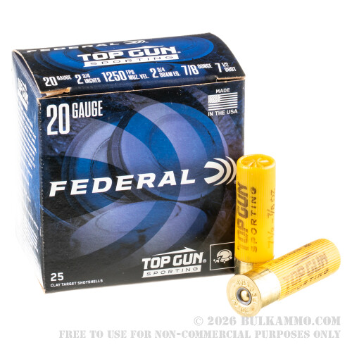 250 Rounds of 20ga Ammo by Federal Top Gun Sporting - 7/8 ounce #7.5 shot