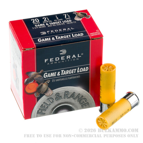 250 Rounds of 20ga Ammo by Federal Field & Range - 7/8 ounce #7.5 shot