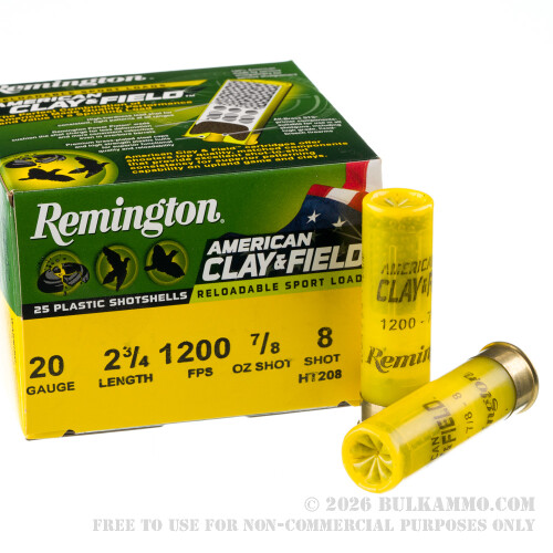 250 Rounds of 20ga Ammo by Remington American Clay & Field - 7/8 ounce #8 shot